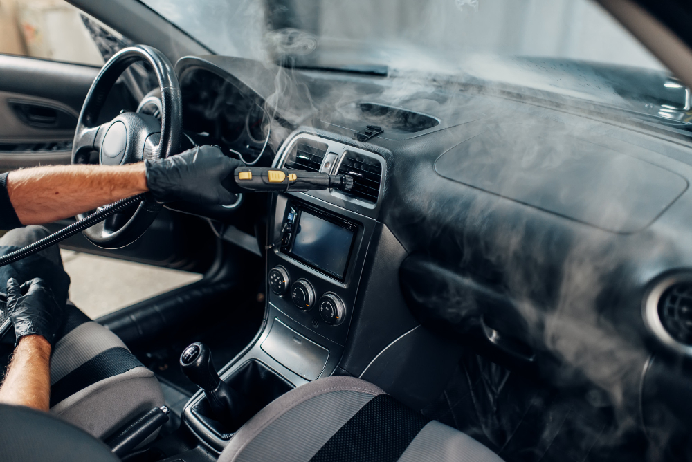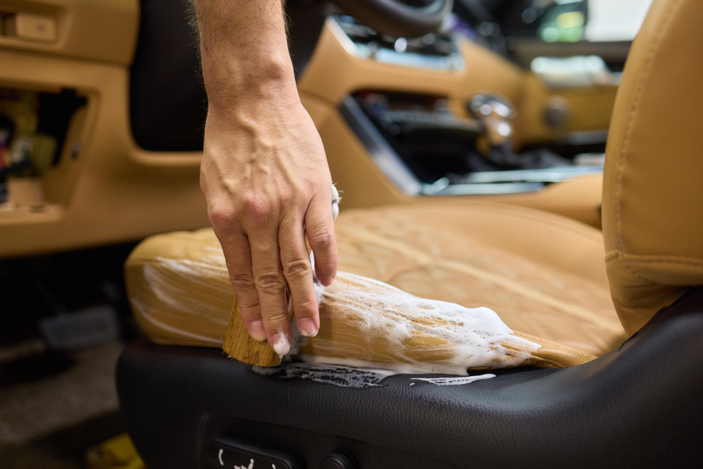 Leather surfaces are deep-cleaned and moisturized, or fabric seats are steam-cleaned to eliminate embedded dirt and bacteria.
